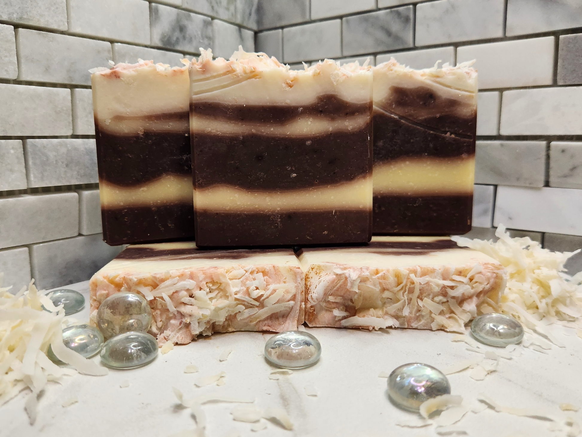Ingredients: Olive Oil, Coconut Oil, Kokum Butter, Mango Butter, Distilled Water, Lye, Castor Oil, Fragrance, Skin safe colorants