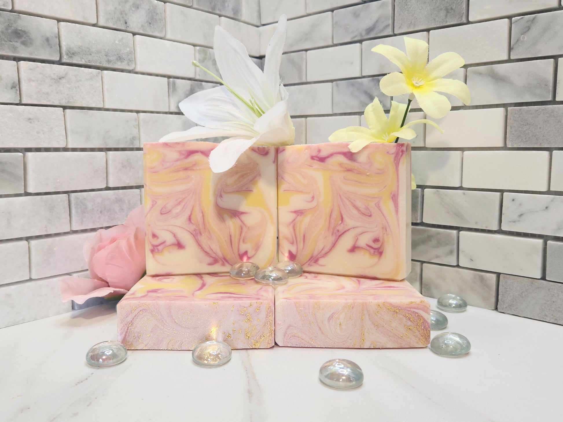 Ingredients: Olive Oil, Coconut Oil, Kokum Butter, Mango Butter, Distilled Water, Lye, Castor Oil, Fragrance, Skin safe colorants