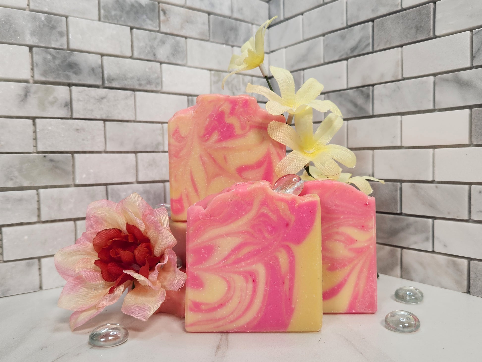 Ingredients: Olive Oil, Coconut Oil, Kokum Butter, Mango Butter, Distilled Water, Lye, Castor Oil, Fragrance, Skin safe colorants